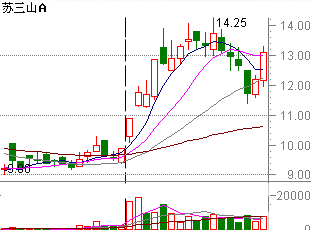 在97年底的年報預演行情中,深市的“蘇三山”在連續幾個月日成交量不足200萬股